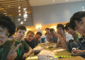 ホテルのカフェテリアで他国の代表と交流(早田くん提供)